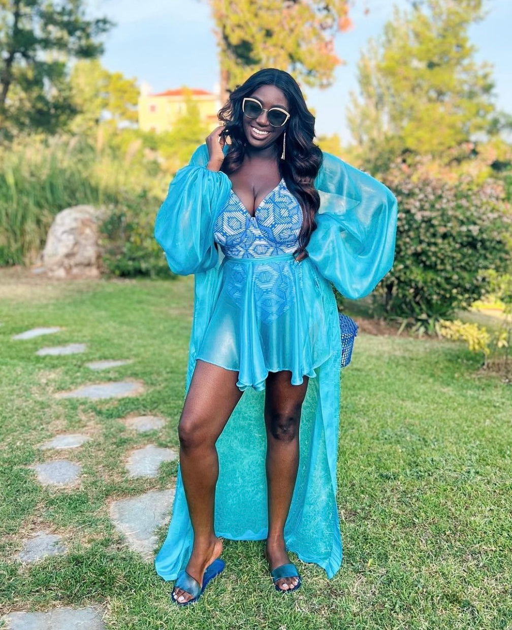 Another gem! We love this sheer kimono with exaggerated sleeves the cutest flare shorts. Great for a beach or pool side day or rock the kimono with a separate outfit!