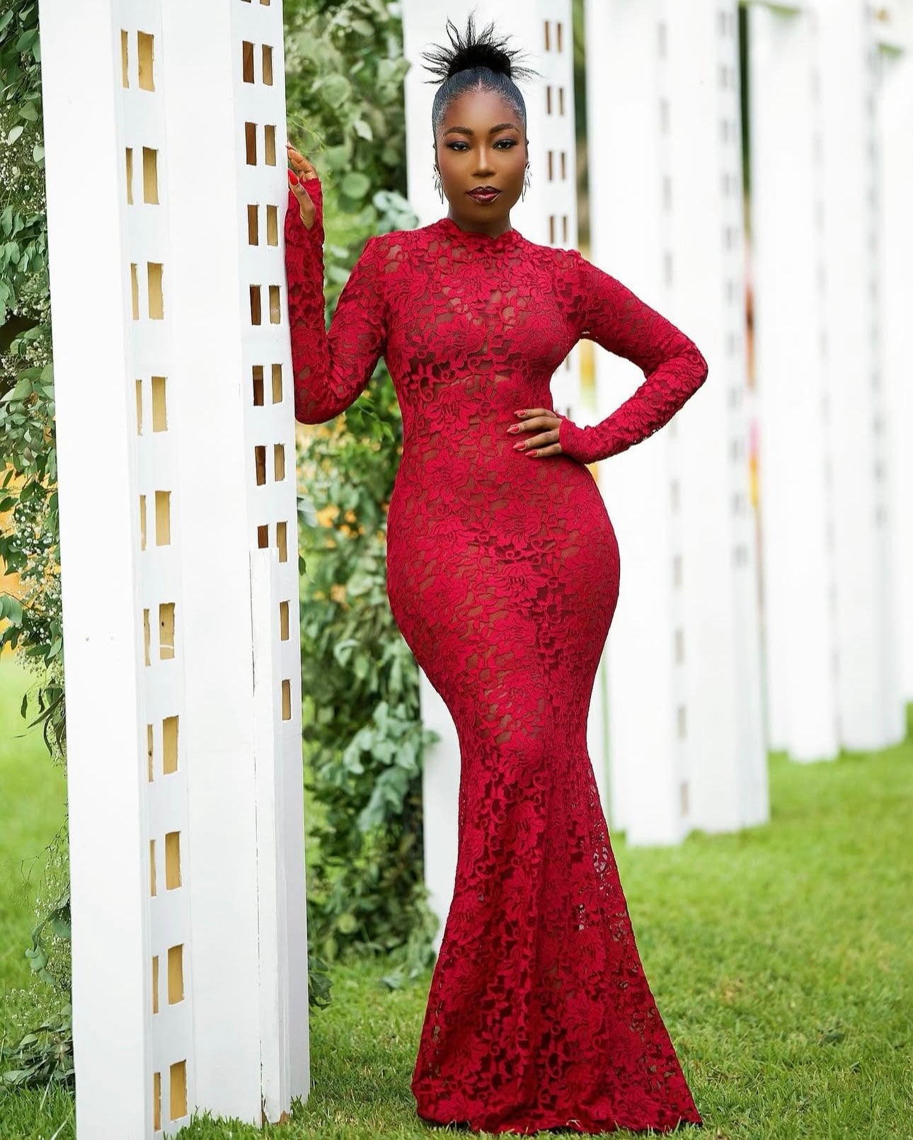 Burgundy lace BarkersWoode gown