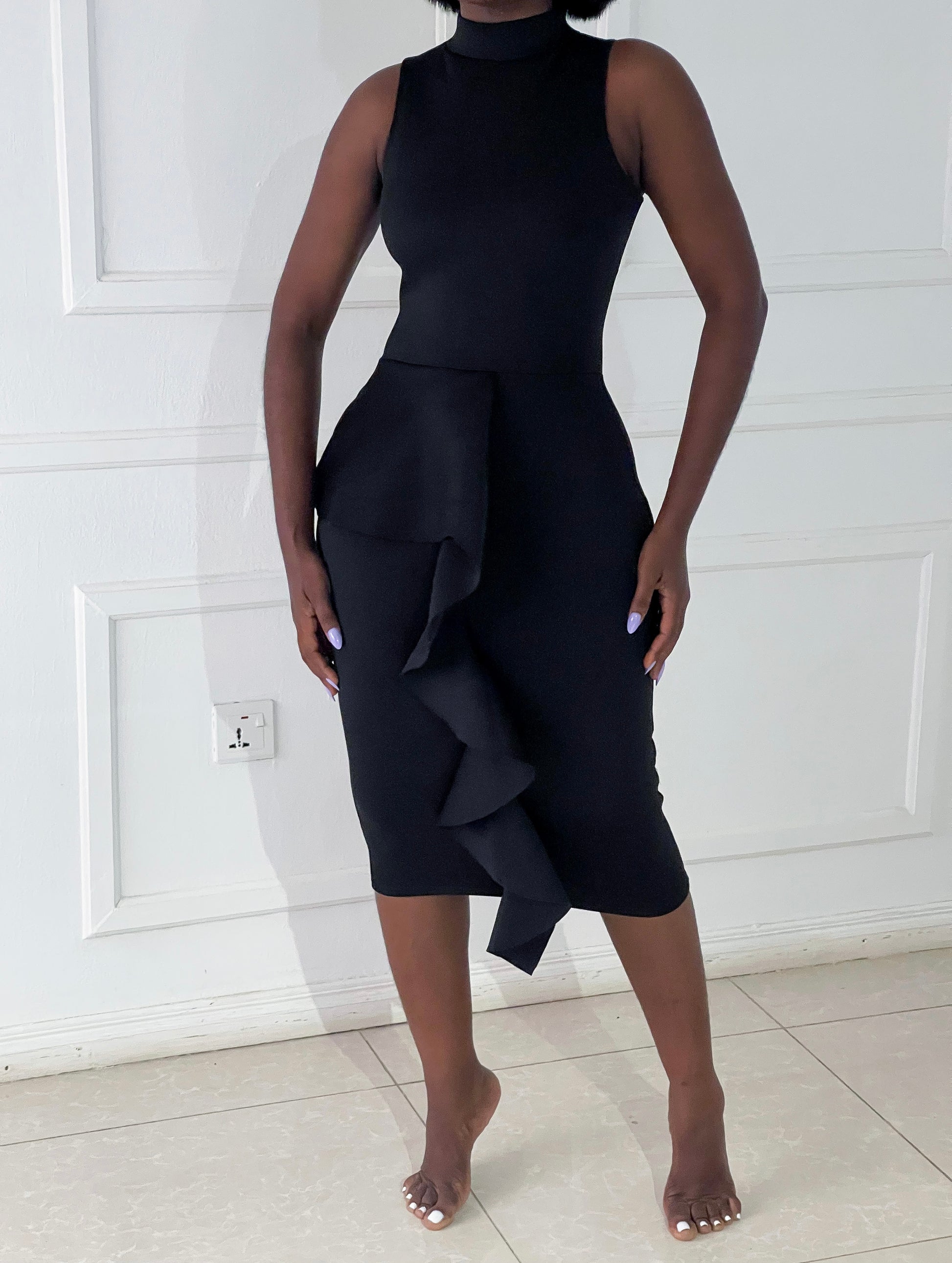 Missguided pencil dress with ruffle detail
