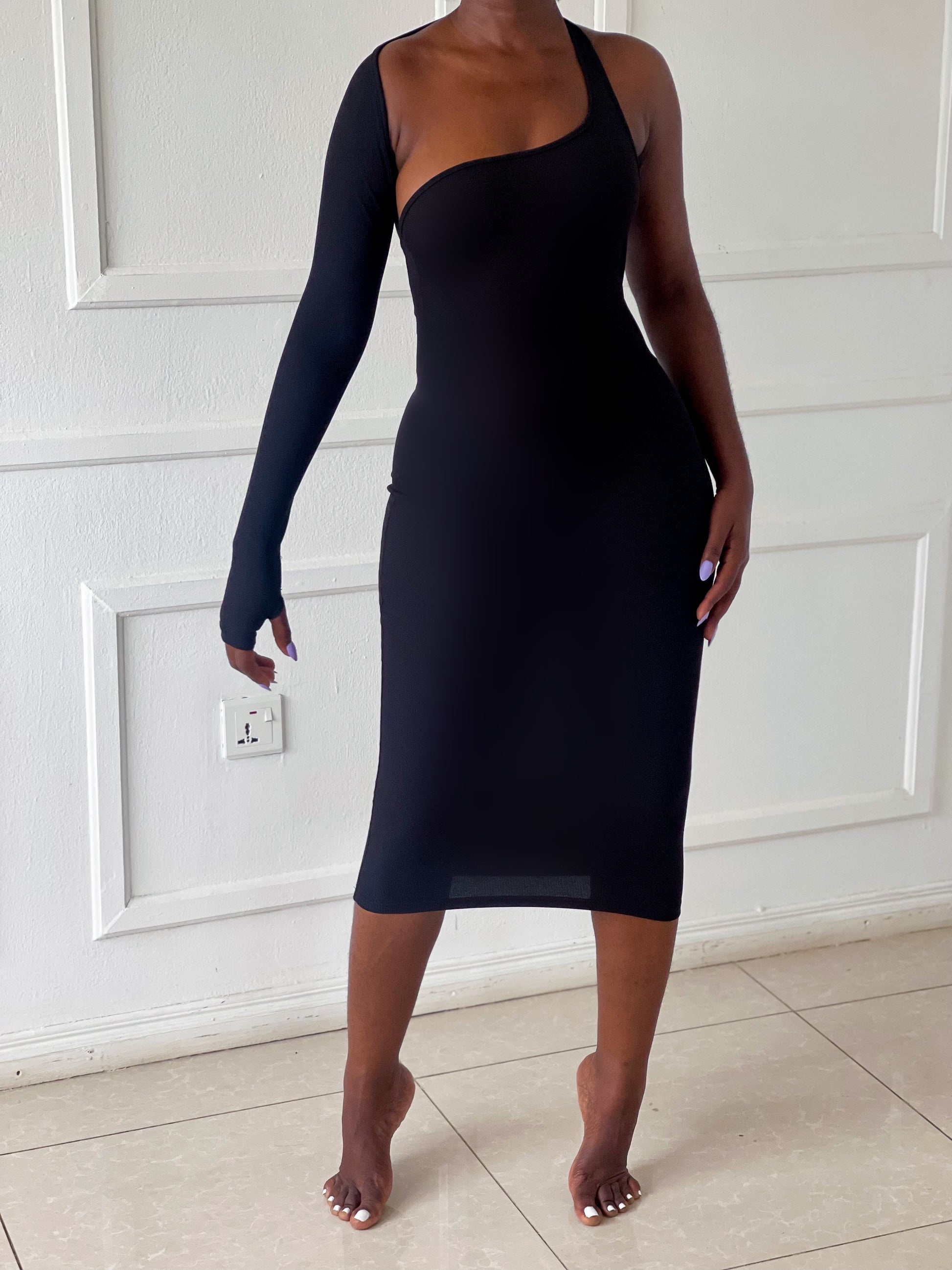 Monosleeve bodycon midi dress