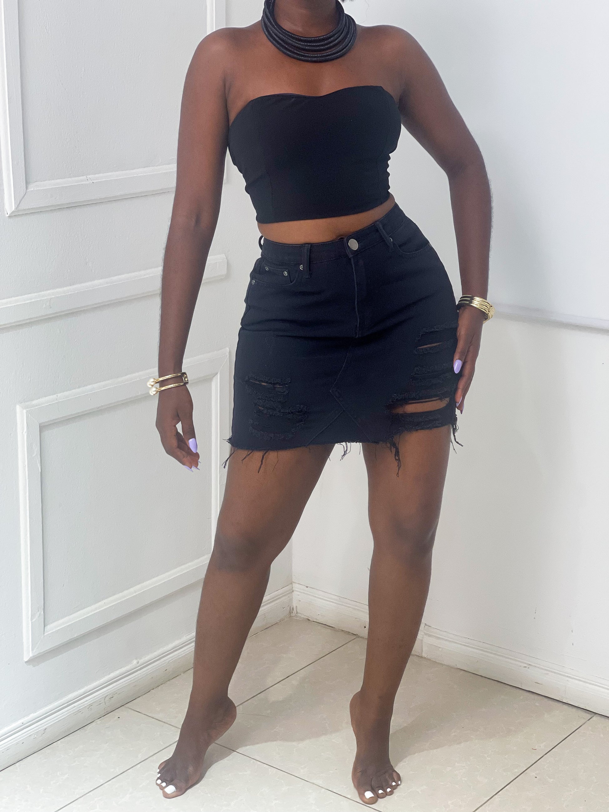 Ripped denim skirt