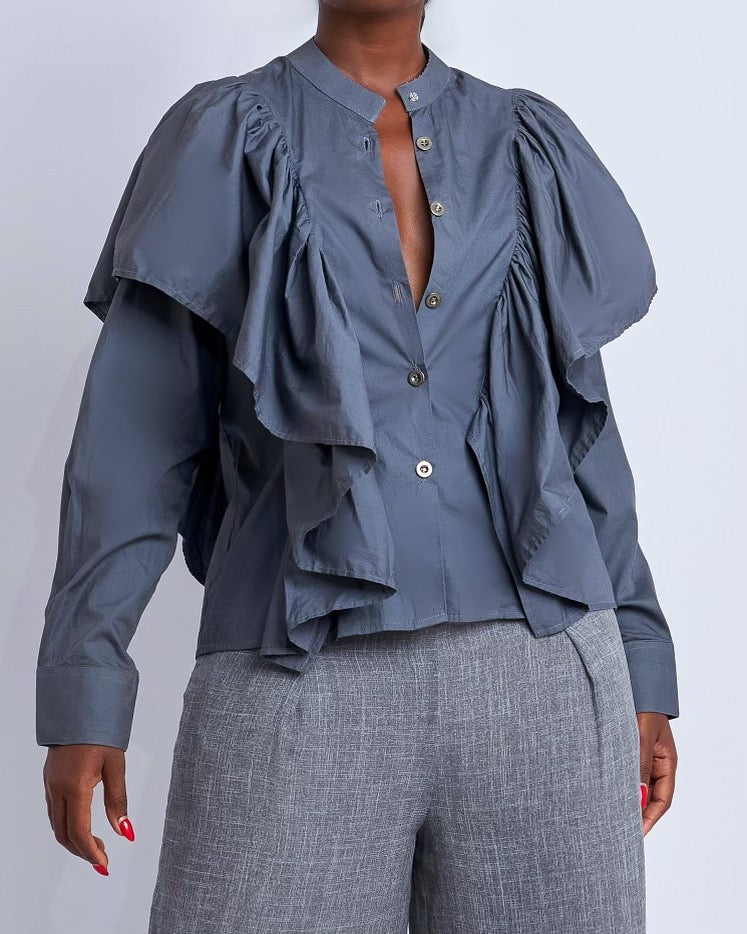 Slate Shirt with Dramatic Ruffle Detail