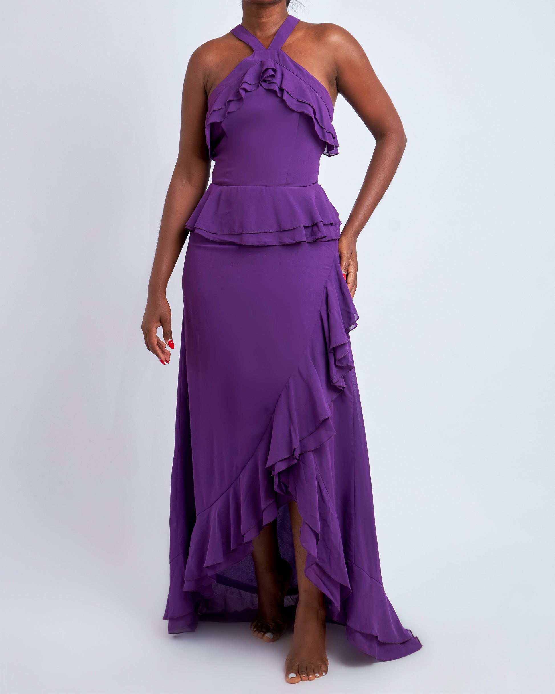 This dress is giving complete goddess vibes! Its gorgeous purple colour pops off any skin tone